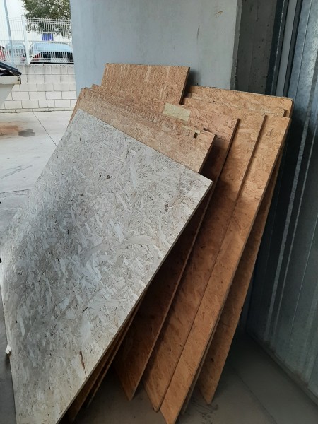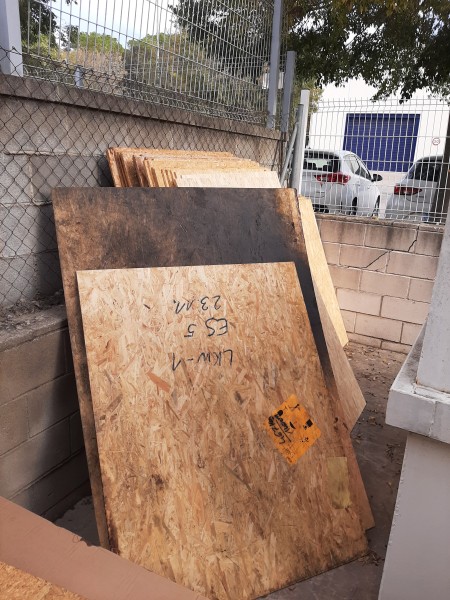 Planxes de conglomerat de fusta de 2 metres de llarg x 1,25 d’ample i 1 cm de gruix.